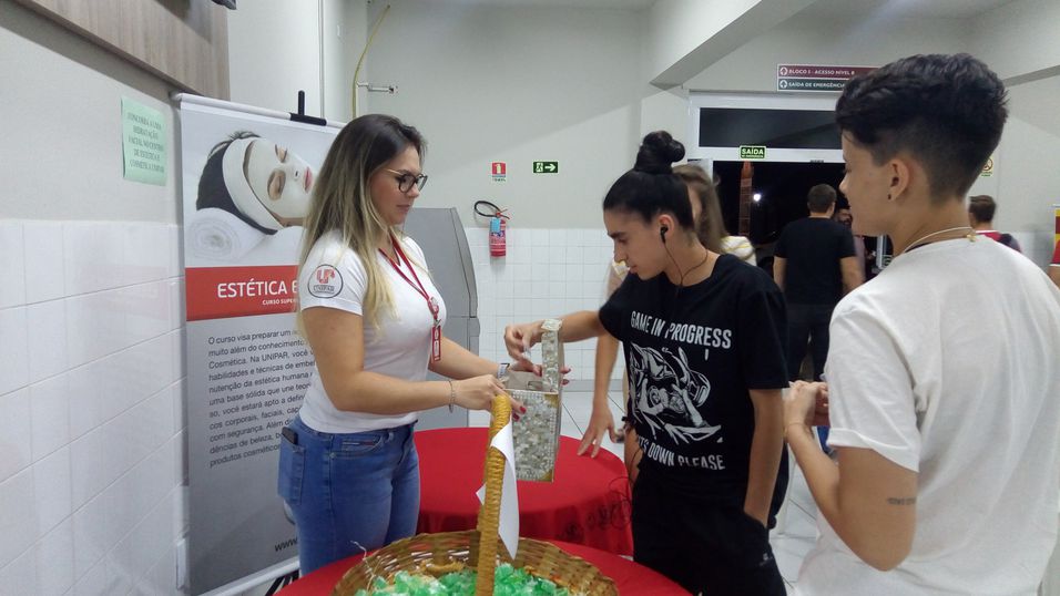 Em Cascavel A direção da Unidade realizou ação no centro da cidade, denominada ‘Delas para Elas’. O trabalho fez parte da edição Unipar Itinerante, promovida em parceria com a Amic (Associação de Microempresas e Empresas de Pequeno Porte do Oeste do Paraná). Com uma forma singela de marcar a data, professoras e alunas dos cursos de Enfermagem e de Estética e Cosmética levaram orientações e atendimentos de saúde para mulheres de todas as faixa-etárias. Teve aferição da pressão arterial, teste rápido de glicemia, quick massage e pintura facial. Tudo acompanhado pela equipe de docentes e equipe do Prove (Programa de Valorização da Educação). Outra ação foi realizada com o apoio da Rádio Capital FM, também no calçadão central. Além dos serviços de saúde, as mulheres receberam orientações de cuidados com a pele e foram presenteadas com rosas. As comemorações também se estenderam ao Campus da Universidade, contemplando acadêmicas, professoras e funcionárias. Os serviços oferecidos foram massagem, design de sobrancelha e depilação facial com linha egípcia, possibilitando, ainda, que às alunas do curso de Estética colocassem em prática todo o conhecimento adquirido em laboratório. Encontro aconteceu via Piae (Programa Institucional de Atenção ao Estudante). O objeto foi reforçar e reconhecer a força e representatividade da mulher na sociedade, seja no mercado de trabalho ou em seus lares. Esse projeto de extensão também permitiu ampliar o empoderamento feminino, a autoestima e cuidados com a saúde, beleza e bem-estar. Para refletir sobre a data, as colaboradoras da Universidade tiveram um bate-papo com a psicóloga Juliana Klein, coordenadora da graduação. O encontro foi organizado pela Cipa (Comissão Interna de Prevenção de Acidentes) e objetivou falar sobre a beleza que é ser mulher, e sua capacidade de lutar e se levantar sempre.
