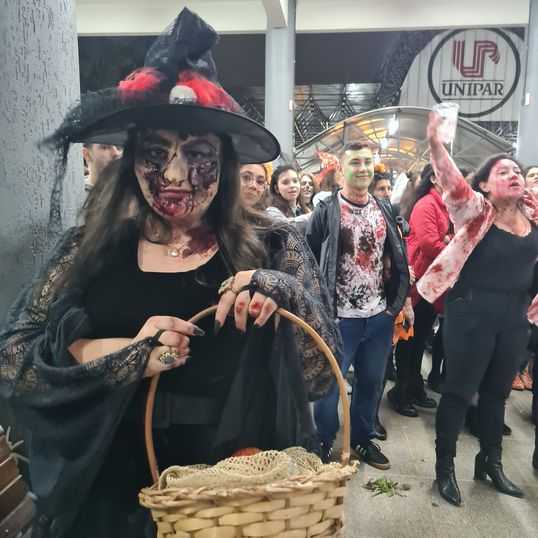 No evento da Unipar não faltou criatividade e diversão. Acadêmicos e professores compuseram lindas maquiagens e fantasias. Teve bruxas, esqueletos, vampiros, zumbis, noivas e muitos outros personagens assustadores e icônicos.