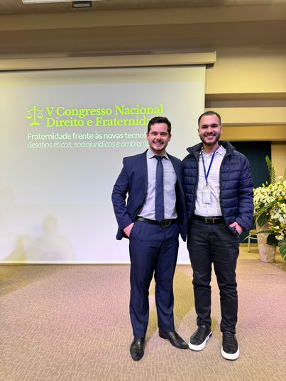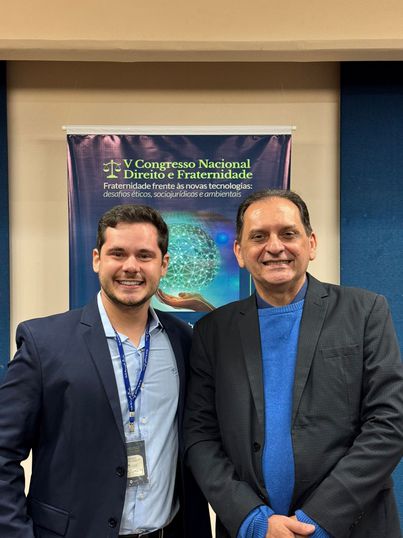 O docente do curso de Direito e do Programa de Mestrado em Direito e Cidadania da Universidade Paranaense (Unipar), Pedro Henrique Marangoni, junto ao acadêmico Henrique Rahal Tauil, participaram do lançamento de livro durante o V Congresso Nacional de Direito e Fraternidade, realizado entre os dias 25 e 27 de setembro de 2025, em Vargem Grande Paulista (SP). O docente é autor de um dos capítulos da obra, que reúne pesquisas sobre os impactos das novas tecnologias à luz do princípio da fraternidade e foi coordenado pelo ministro do Superior Tribunal de Justiça (STJ), professor doutor Reynaldo Soares da Fonseca, e pela desembargadora Maria do Perpétuo Socorro Guedes Moura.