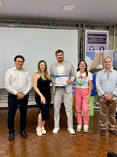 A premiação foi entregue pelo presidente do CREA-PR, Clodomir Luiz Ascari, que reforçou a importância do reconhecimento institucional aos educadores que desempenham papel fundamental na construção do conhecimento técnico e humano dos futuros profissionais da engenharia.