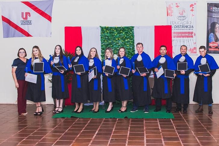 Foram diplomados alunos dos cursos de Administração, Ciências Contábeis, Filosofia, Gestão Comercial, Gestão de Recursos Humanos, Gestão Financeira, Gestão Pública, História, Letras, Logística, Marketing, Pedagogia e Processos Gerenciais, de vinte dos 60 polos de apoio presencial da Unipar, em cinco estados do Brasil.
