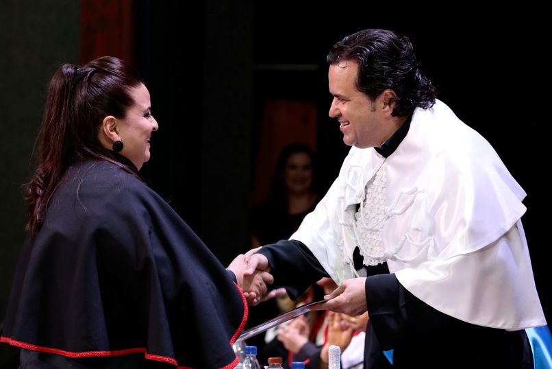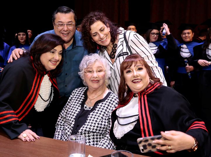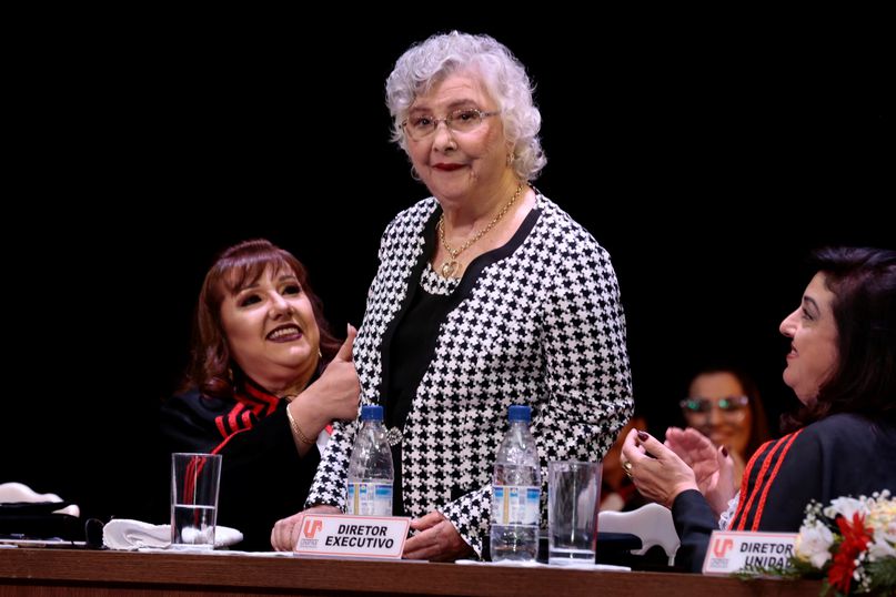 Na mesa de honra estava uma pessoa muito especial: a professora Odethe Oliveira, sócio-fundadora da Apec [entidade mantenedora da Universidade Paranaense]. Ela foi para aplaudir e abraçar a neta, Luciana de Oliveira Varanti, que se formou em RH e foi laureada por ter obtido a melhor média.