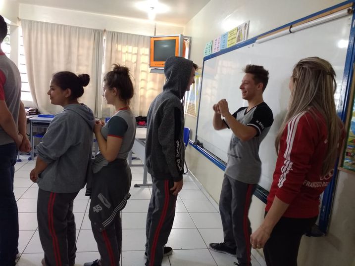 Os acadêmicos elaboraram também diferentes tarefas recreativas e motoras, que exigiram dos alunos agilidade, velocidade, coordenação, ritmo, precisão, raciocínio lógico e trabalho em equipe