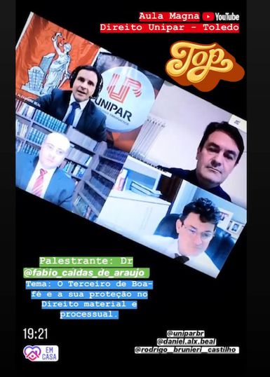 Esse amplo acesso às tecnologias também fornece possibilidades infinitas. Assim, seguindo essa linha inovadora e sempre a procura dos melhores processos de ensino para seus alunos, o curso de Direito da Unidade de Toledo realizou no mês passado, de forma remota, a sua tradicional Aula Magna e a 22ª Semana Jurídica. Os eventos foram transmitidos pelo canal do curso [Direito Unipar Toledo] no Youtube, atingindo os mais variados públicos de diversas cidades e estados do Brasil.
