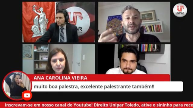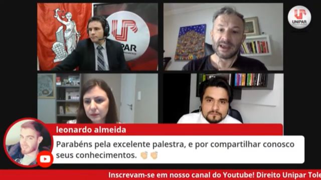 “Todo o material encontra-se gravado e disponível na página do nosso canal no Youtube. Sendo assim, convido a todos para ver ou rever as palestras, basta se inscrever no canal e ativar o sininho para receber as notificações, já que em breve teremos mais novidades e atividades para todos os estudantes e profissionais da área jurídica. Na Unipar, o conhecimento não para”, afirma o coordenador do curso de Direito, professor Daniel Beal.