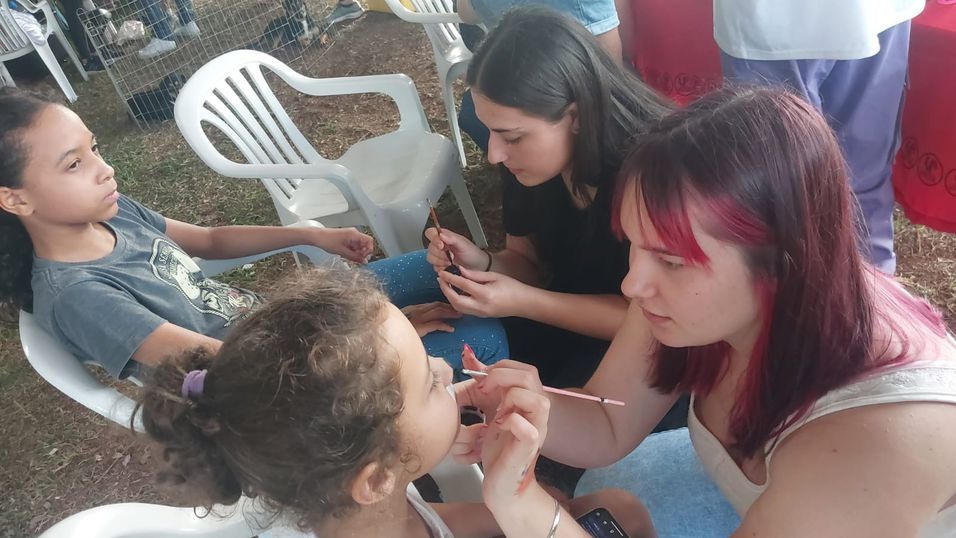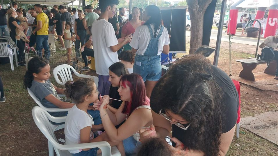 Durante a feira, que ocorreu no Parque Ecológico Diva Paim Barth, estiveram presentes os alunos de Farmácia, aferindo a pressão arterial e glicemia dos visitantes, alunos de Medicina Veterinária, que auxiliaram nos processos de adoção, e também de Pedagogia, que fizeram pinturas faciais na criançada.
