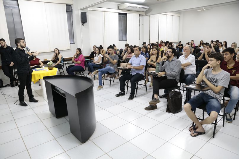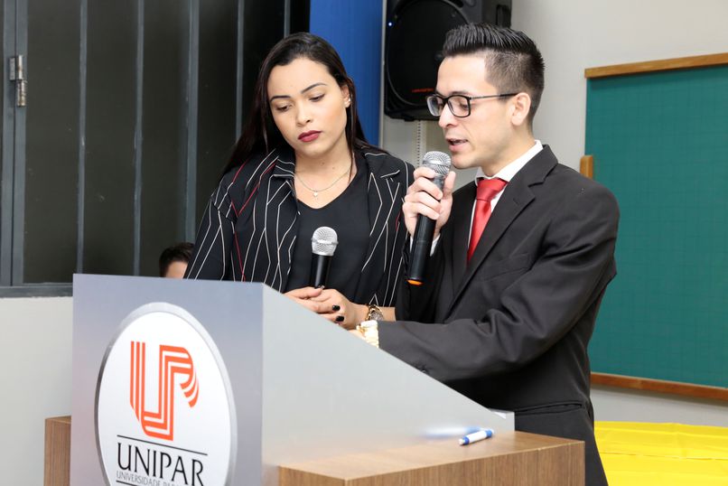 Os acadêmicos Roberto Pimenta e Débora Brito comandaram o cerimonial.