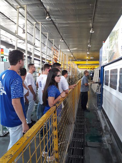 A viagem continuou na Divinal Vidros, empresa que transforma o vidro “in natura” em vidro temperado, insulado, laminado, entre outros. Lá, o grupo teve uma aula sobre o processo completo de fabricação e transformação de vidros. Ao final, foram presenteados com brindes.