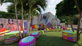 Os estudantes também trabalharam componentes como caixa de areia, cimento, madeira, figuras geométricas e uma mistura de cores, tudo pensado para instigar as percepções sensoriais.