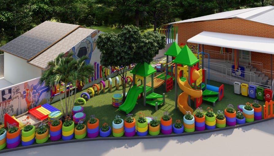 Durante o processo criativo, a Instituição indicou detalhes a serem considerados no projeto: uso de pneus em alguns brinquedos; modelo de playground a ser inserido; uso do elemento água em cascata ou chuveiro; acesso do bloco para o parque ter acessibilidade; uso de elementos que estimulem o toque (vegetação); brinquedo que estimule equilíbrio do educando; bloqueio ao acesso entre o parque e a rua de trânsito interna.
