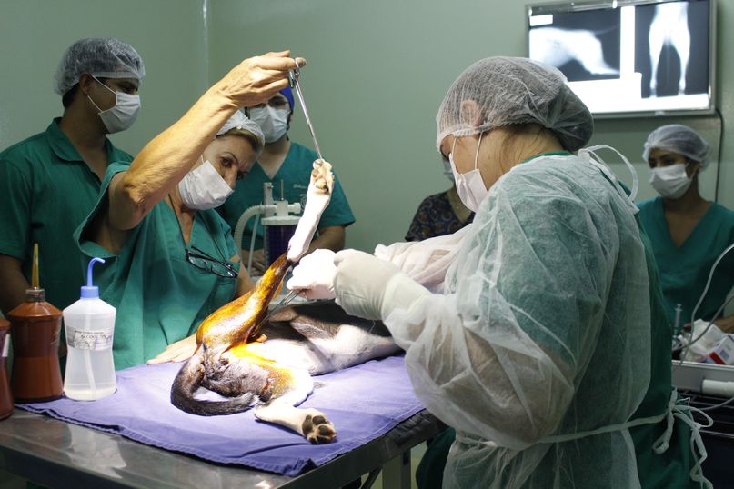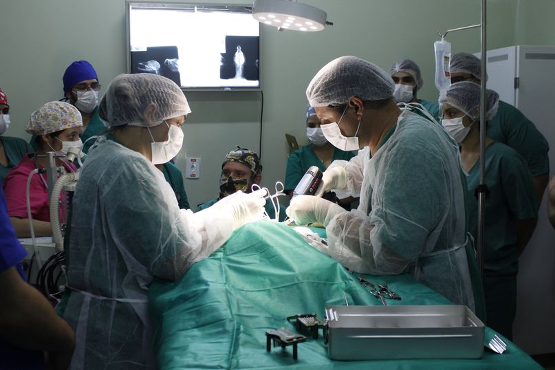 Além das aulas práticas, os acadêmicos têm a oportunidade de assistir às cirurgias que são realizadas com frequência. Anualmente são cerca de 300, a maioria em cães e gatos, mas animais selvagens, pets exóticos e grandes animais também fazem parte do cadastro de atendimento ortopédico do HV da Unipar.