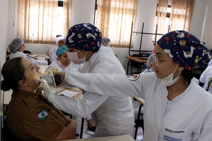 Em ação de assistência ao 25º Batalhão da Polícia Militar, o curso de Odontologia da Universidade Paranaense – Unipar, Unidade de Umuarama, realizou avaliações dentárias, beneficiando vários policiais e seus familiares (em 25/07). O serviço foi solicitado pelo comandante, tenente coronel Agnaldo Letrinta.