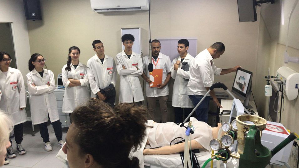 No Centro de Simulação em Saúde, o RT Diego das Neves os conduziu, explicando as atividades que o ambiente oportuniza.