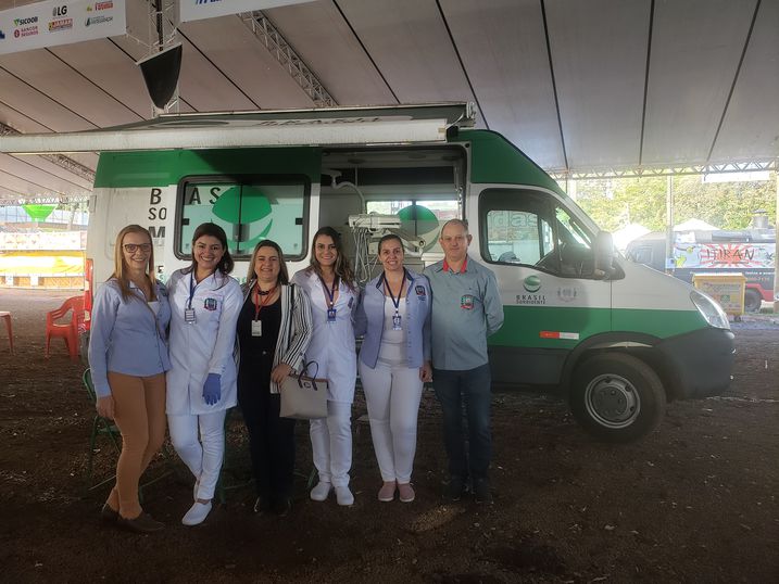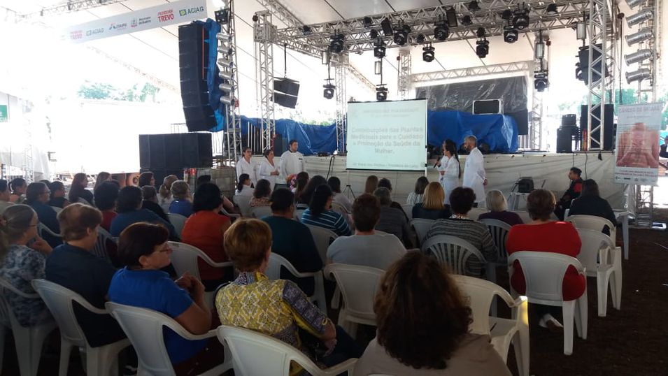 Cumprindo com seu papel de responsabilidade social, acadêmicos e professores promoveram palestra e prestaram serviços de saúde para as produtoras rurais que estiveram na 5ª Feira do Leite. Aferição de pressão arterial e testes de glicemia capilar fizeram parte da pauta.