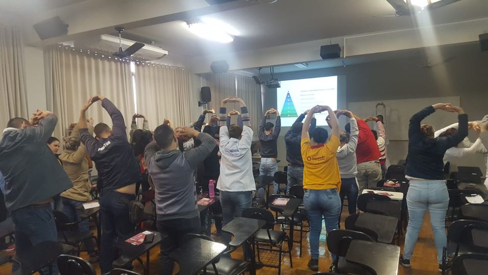 O curso de Fisioterapia da Universidade Paranaense – Unipar, Unidade de Toledo, promoveu palestra para os colaboradores do Grupo Muffato (em 18/07). O tema exposto na ocasião foi a importância da ginástica laboratorial e os cuidados no transporte de peso.