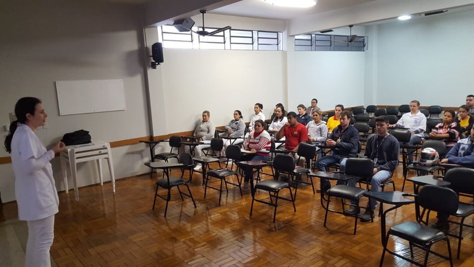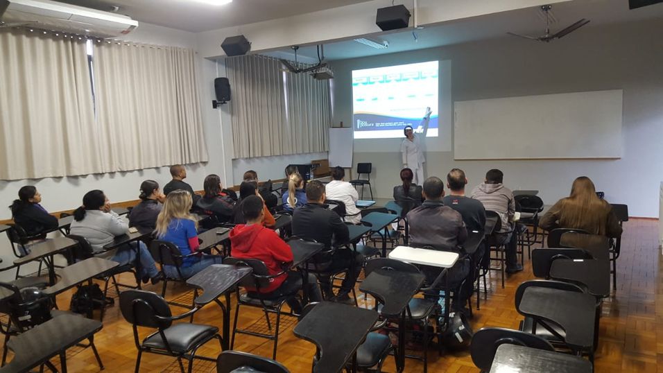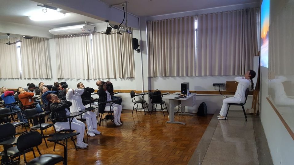 A palestra, ministrada pela graduanda Karla Feldmann, teve como objetivo levar conhecimento básico de anatomia e prevenção de doenças osteomusculares causadas por esforços repetitivos e posturas inadequadas do corpo no ambiente de trabalho.