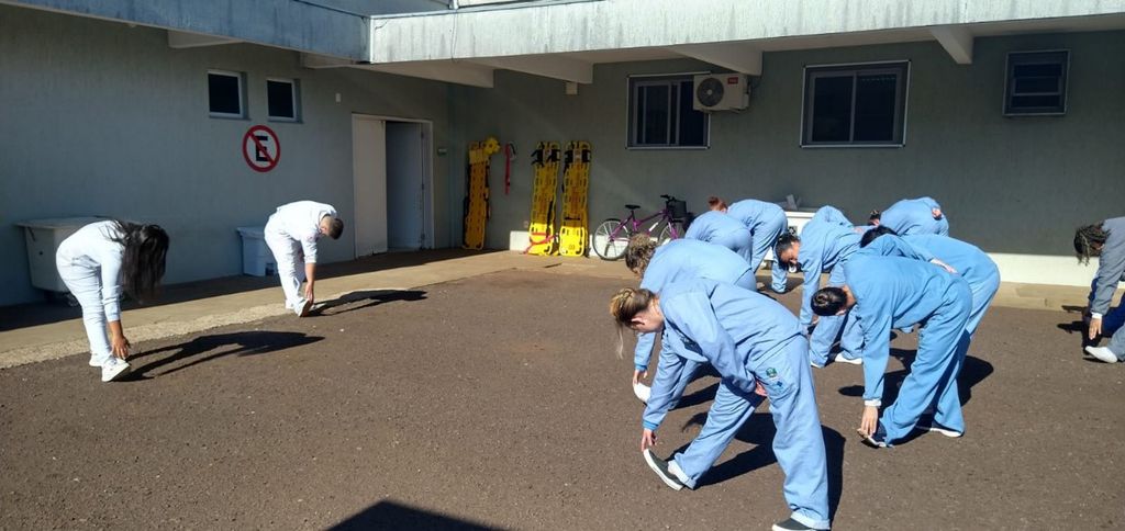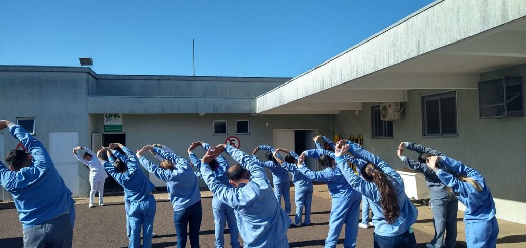 Cuidar de quem cuida. O curso de Fisioterapia da Universidade Paranaense - Unipar, representados pelos acadêmicos Patrícia Silva de Lima e Guilherme Henrique de Souza Silva (5° ano), participou da 1ª Sipat Consamu (Consórcio de Saúde dos Municípios do Oeste/PR), realizada na UPA (Unidade de Pronto Atendimento) de Toledo.