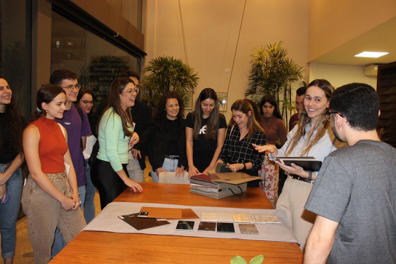A coordenadora do curso, professora Deborah Paciornik, acompanhou os acadêmicos na visita conduzida pela proprietária da loja, Evyn Zandoná, e a arquiteta Gabriela Menegotto - ambas egressas da Unipar. Além da gentil recepção, as anfitriãs se despediram com um coffee.