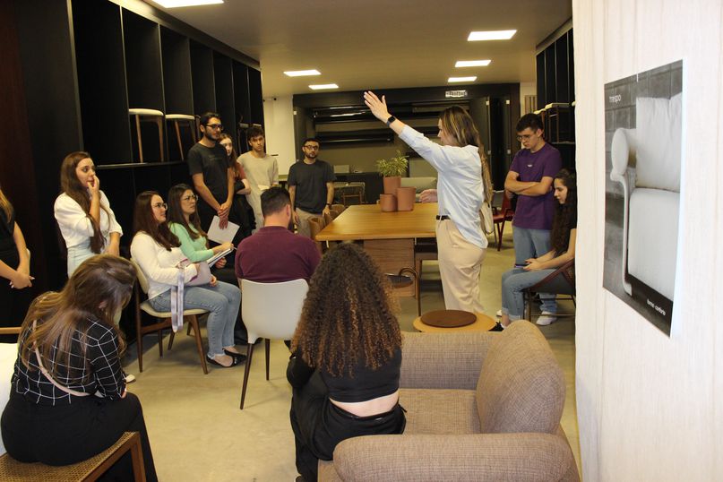 O grupo apreciou peças exclusivas de marcas conceituais, como Saccaro, Schuster, Doimo, Moora, entre outras. Também conheceu mais sobre a estrutura e acabamento dessas linhas, manutenção dos móveis e estofados, variedades de tecidos e texturas dos materiais.