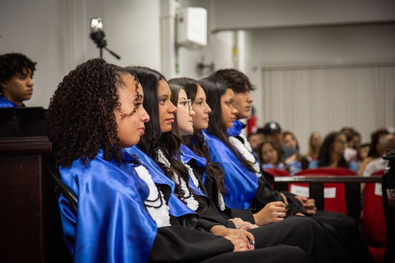 Cerimônia realizada no Tribunal do Júri reuniu formandos, familiares e parceiros, celebrando a formação socioprofissional de jovens em situação de vulnerabilidade social