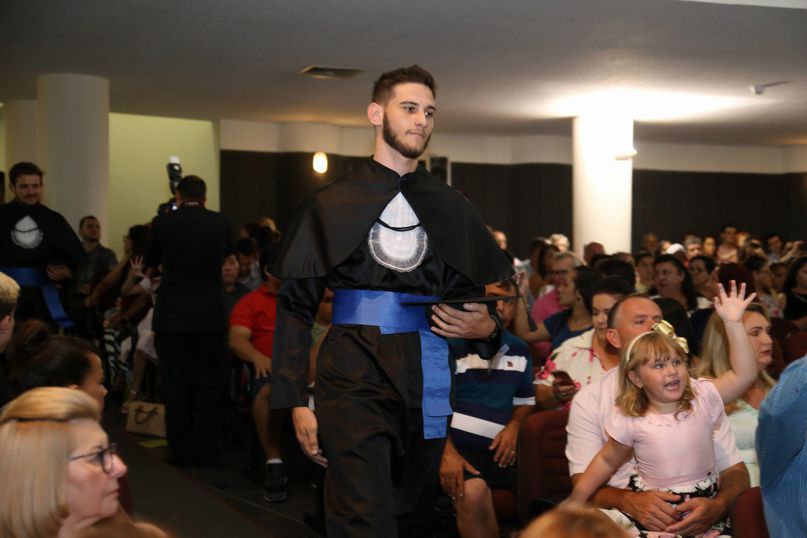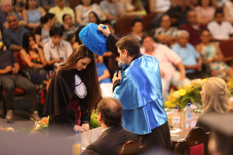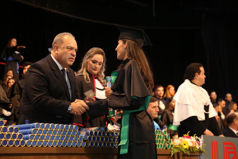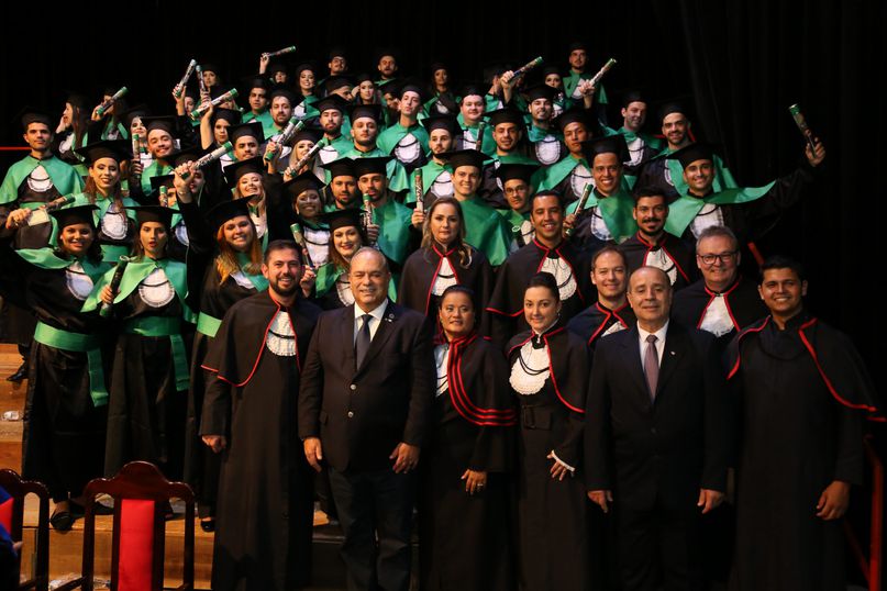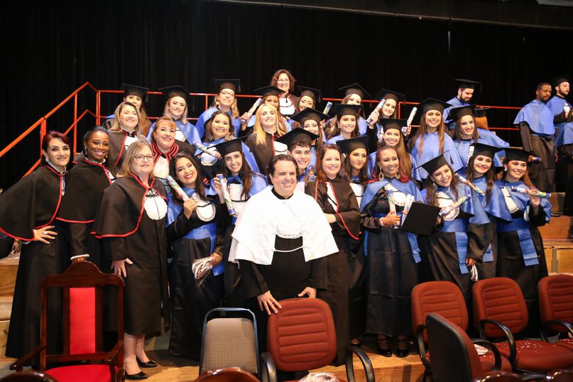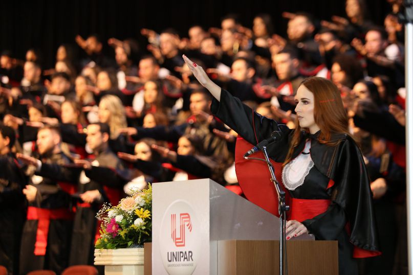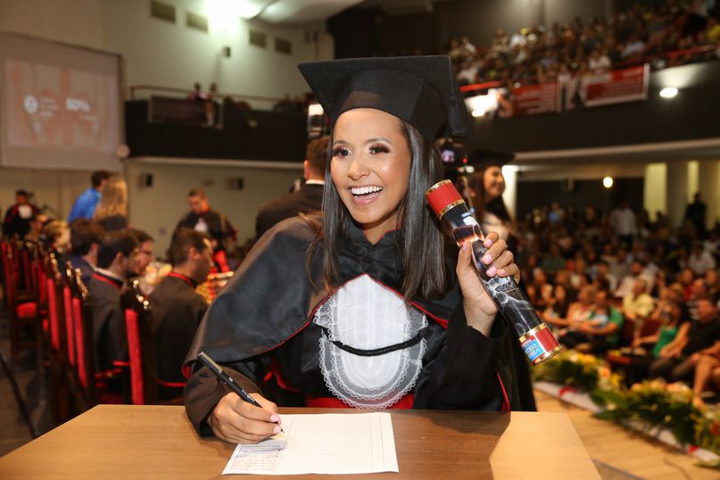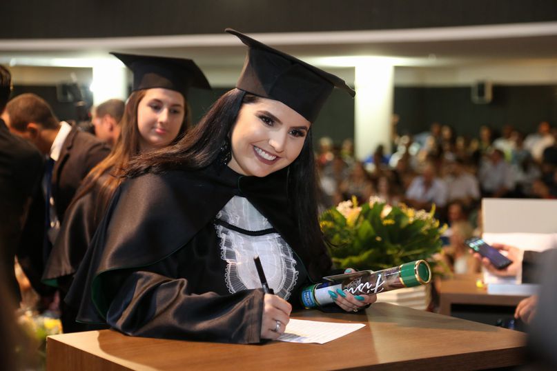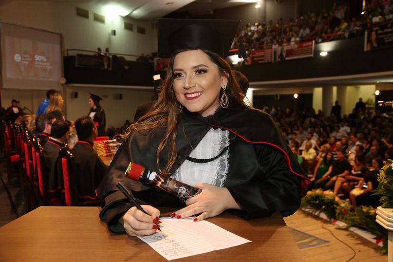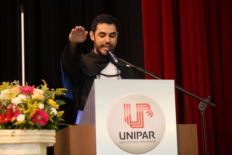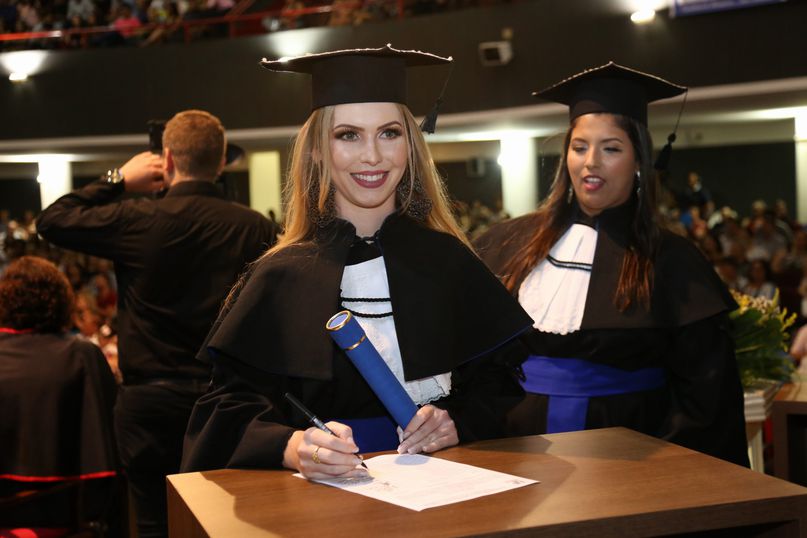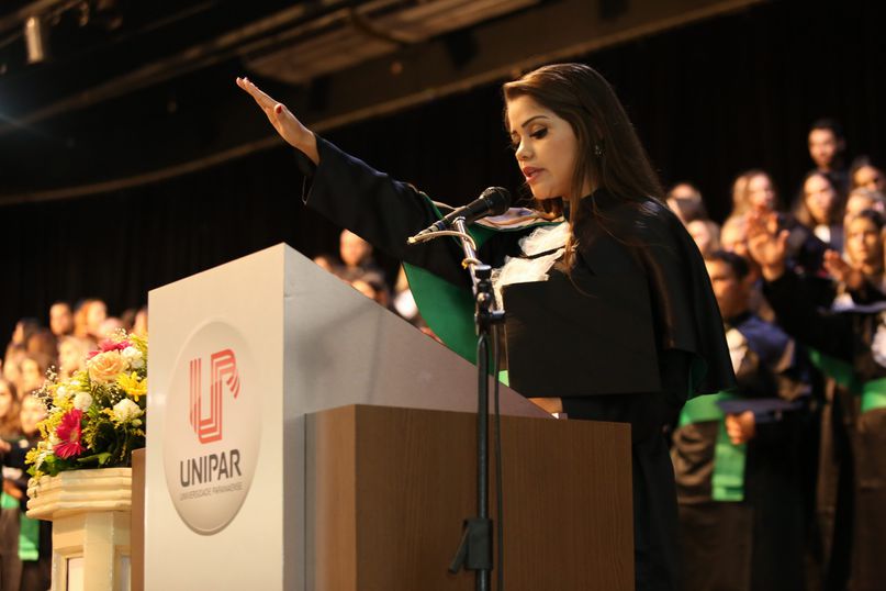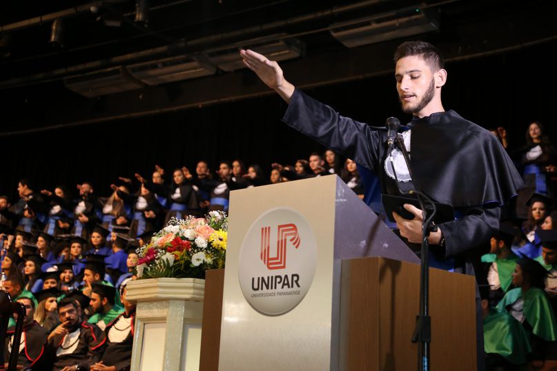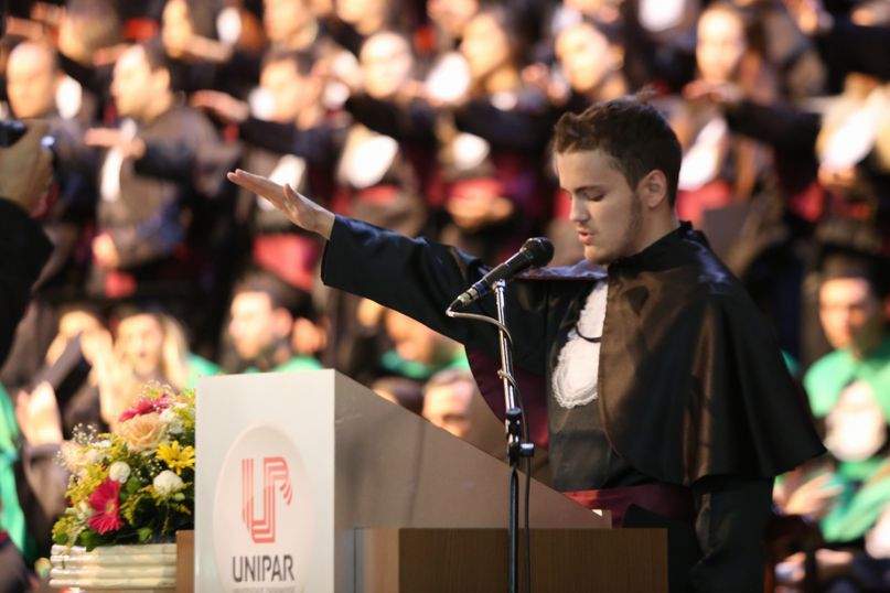 Juramentista - Eleitas pelos colegas, Tatiane Souza Cancian fez o juramento do bacharel em Direito; Bianca Dias Fonseca, do bacharel em Medicina Veterinária; Mateus Lima Ferrarezi, do bacharel em Odontologia; João Paulo Torres da Silva, do bacharel em Química Industrial; Maiara Grabrieli Machado Meneghello, do bacharel em Enfermagem; Isadora Rodrigues Delgado, do tecnólogo em Estética e Cosmética; Thais Fujisawa de Freitas, do bacharel em Farmácia; Deise Fernanda Máximo de Lima, do bacharel em Nutrição; Giliane Marcia dos Santos, do bacharel em Educação Física; Gabriel Antônio Parra Valhejo, do bacharel em Pedagogia; Prescila Aparecida Martins, do bacharel em Psicologia; Elnatan Dolce Silva Marchetto, do bacharel em Publicidade e Propaganda.