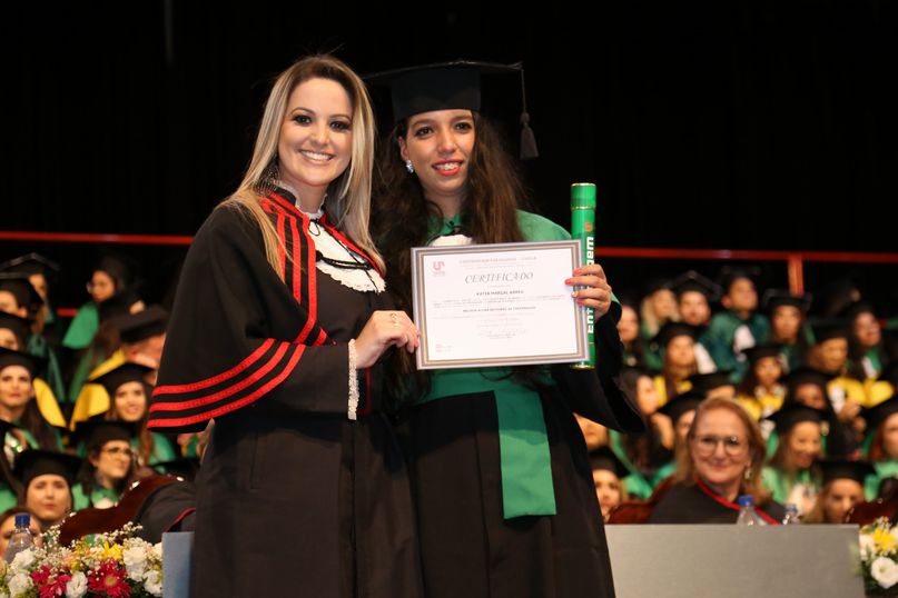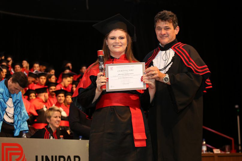 Laureado - Como incentivo ao esforço acadêmico, a Unipar contempla os que obtiveram melhor média durante a graduação. Receberam o certificado de ‘Honra ao Mérito’: Anna Paula Gouveia Pivetta, de Direito (matutino); Natalia Saraiva Rodrigues, de Medicina Veterinária; Rafaela Nogueira Antoniette, de Odontologia; Thainá Aparecida Rafael Silva, de Química Industrial; Katia Marçal Abreu, de Enfermagem; Daiane de Melo Graciano, de Estética e Cosmética; Gilcielen de Oliveira Carreiro, de Farmácia; Laura Maria Soares Betineli, de Nutrição; Beatriz da Silva Rovere, de Educação Física; Gabriel Antônio Parra Valhejo, de Pedagogia; Gabriella Marcondes do Amaral, de Psicologia; Eduarda de Castro de Oliveira, de Publicidade e Propaganda.