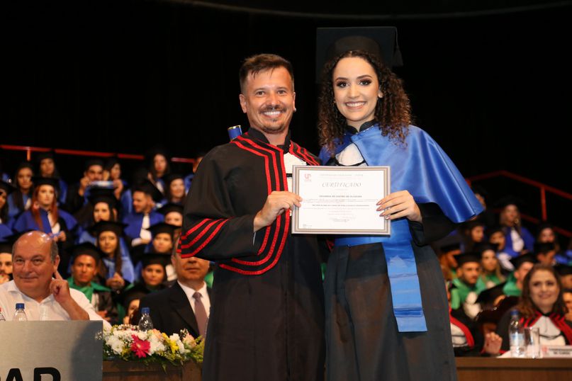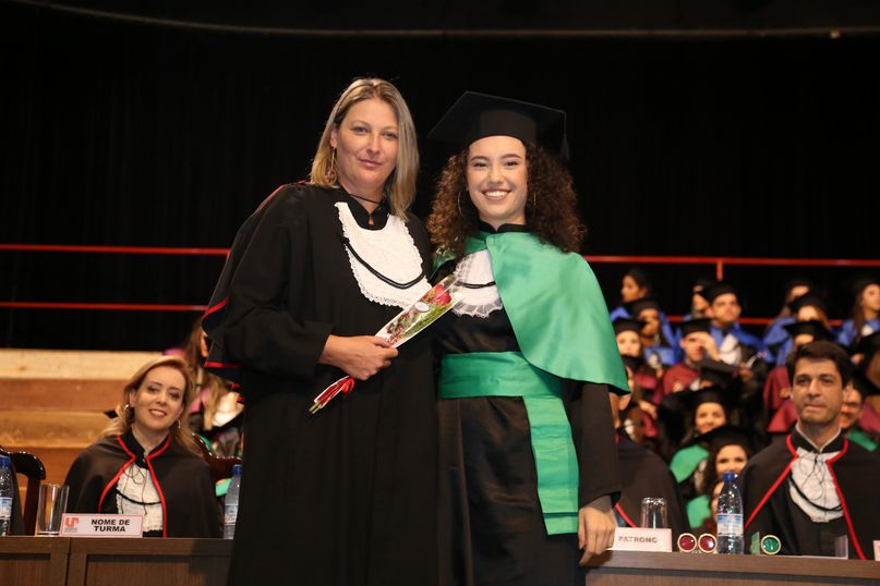 Orador - Para proferir a palavra do orador, as turmas de Direito elegeram a bacharela Raissa Arantes Tobbin; as de Medicina Veterinária, Odontologia e Química Industrial, a bacharela Thainá Aparecida Rafael Silva; as de Enfermagem, Estética e Cosmética, Farmácia e Nutrição, o bacharel Iago dos Santos; as de Educação Física, Pedagogia, Psicologia e Publicidade e Propaganda, a bacharela Raquel Carvalho Lisboa.