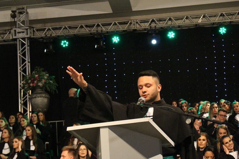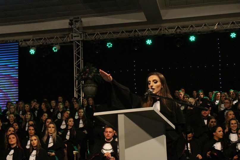 Orador - Para proferir a palavra do orador, as turmas de Ciências Biológicas, Direito, Educação Física, Engenharia Civil, Estética e Cosmética e Odontologia elegeram a bacharela Caroline Trombini; as de Administração, Arquitetura e Urbanismo, Ciências Contábeis, Enfermagem, Farmácia, História, Nutrição e Sistemas de Informação, a bacharela Carolina Beatriz Da Silva Claudino.