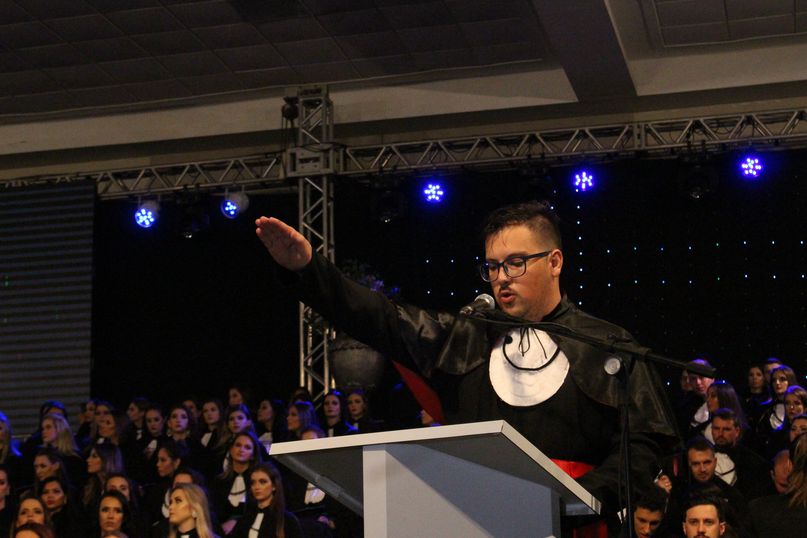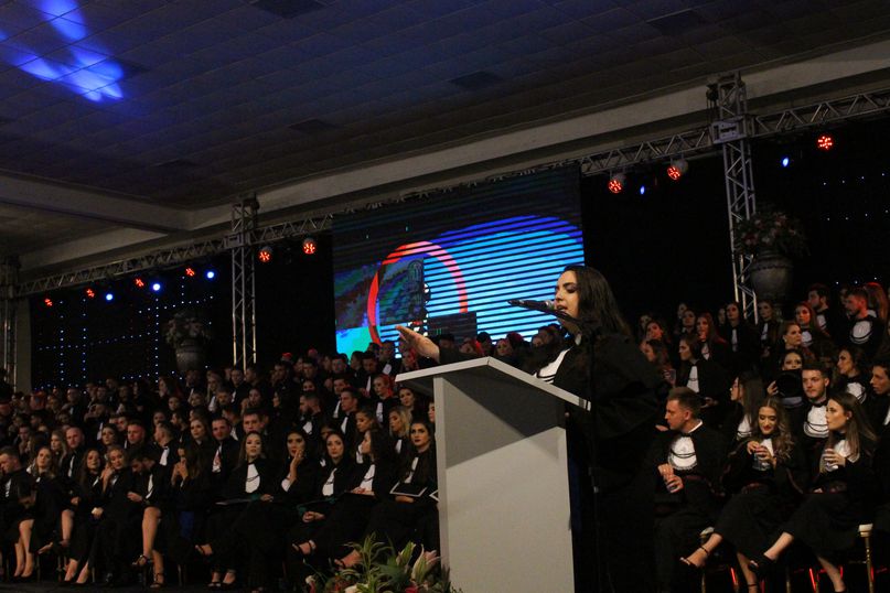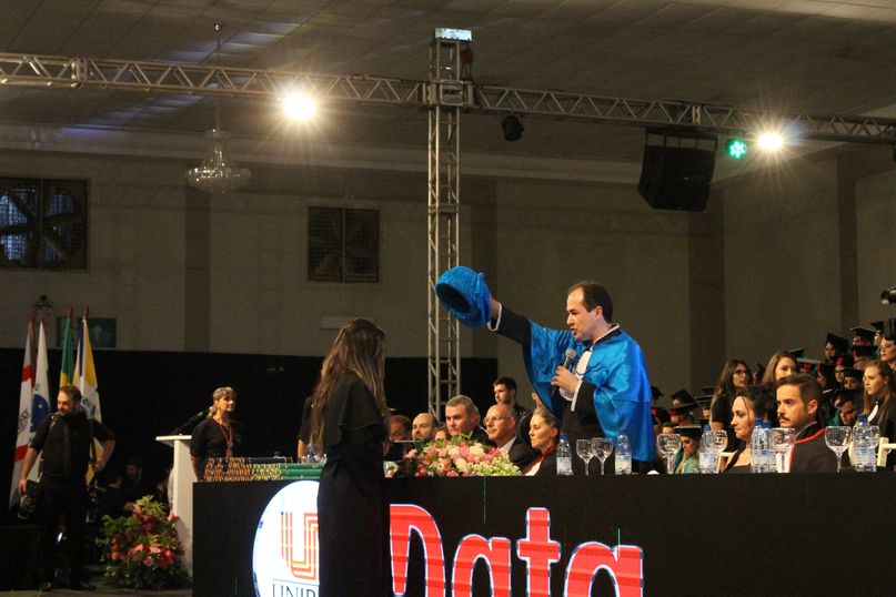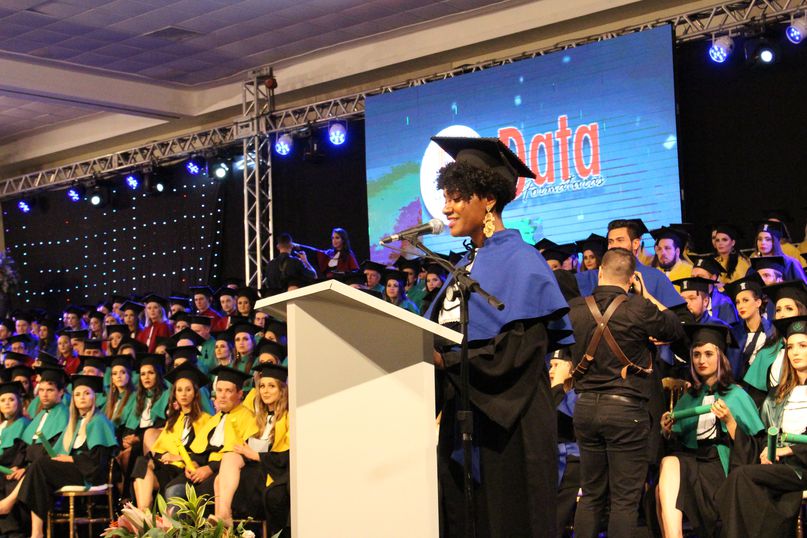 Orador - Para proferir a palavra do orador, as turmas de Ciências Biológicas, Direito, Educação Física, Engenharia Civil, Estética e Cosmética e Odontologia elegeram a bacharela Caroline Trombini; as de Administração, Arquitetura e Urbanismo, Ciências Contábeis, Enfermagem, Farmácia, História, Nutrição e Sistemas de Informação, a bacharela Carolina Beatriz Da Silva Claudino.