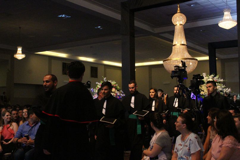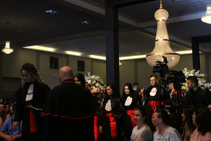 Pela manhã colaram grau os alunos dos cursos de Ciências Biológicas, Direito, Educação Física Bacharel, Educação Física Licenciatura, Engenharia Civil, Estética e Cosmética e Odontologia. À noite foi a vez dos cursos de Administração, Arquitetura e Urbanismo, Ciências Contábeis, Enfermagem, Farmácia, História, Nutrição e Sistemas de Informação.
