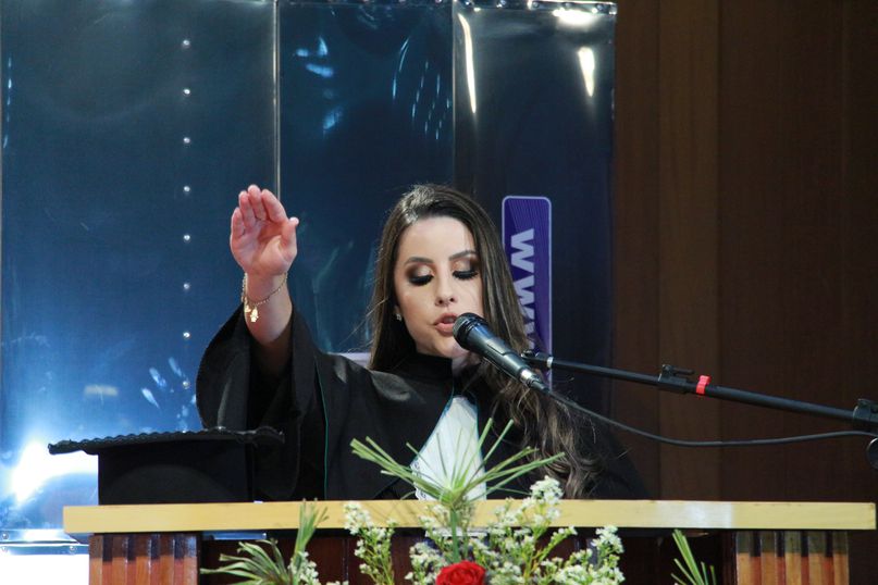 Orador - Para proferir a palavra do orador, as turmas de Educação Física, Farmácia, Fisioterapia elegeram a bacharela Ana Flávia dos Santos Cardoso; as turmas de Análise e Desenvolvimento de Sistemas, Direito, Ciências Contábeis elegeram a bacharela Mariana Virginia Procopio Hubner; as turmas de Arquitetura e Urbanismo, Engenharia Civil, Estética e Cosmética elegeram a bacharela Thalita da Silva Cunha.