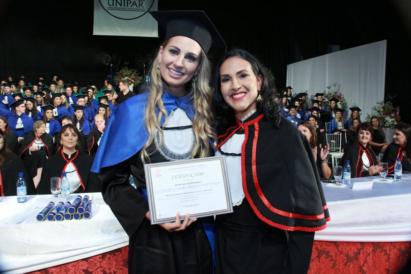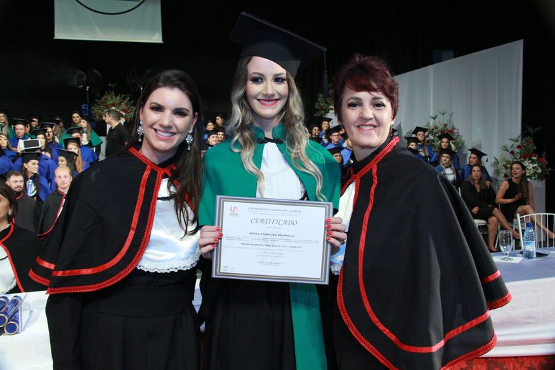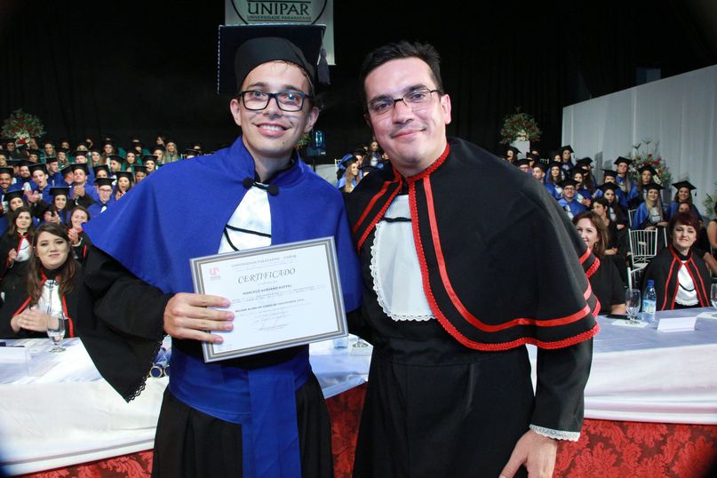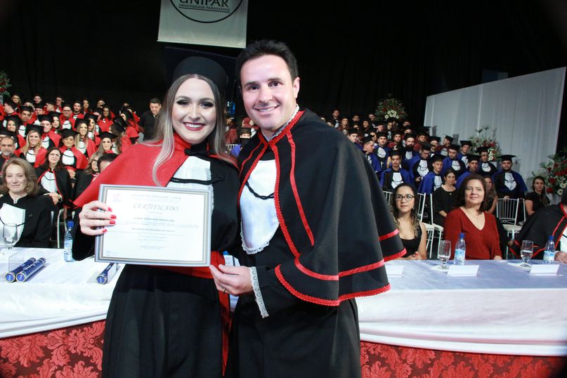 Laureado - Como incentivo ao esforço acadêmico, a Unipar contempla os que obtiveram melhor média durante a graduação. Receberam o certificado de ‘Honra ao Mérito’: Lucieli Flores Velasque, de Educação Física (bacharelado); Elaini Caroline de Lima, de Educação Física (licenciatura); Cláudia de Quadros Paz Alves, de Farmácia; Lucas de Souza Barboza, de Fisioterapia; Henrique Augusto Maltauro, de Análise e Desenvolvimento de Sistemas; Luana Hermann Meierling, de Direito; Marcia Lopes Couto, de Ciências Contábeis; Bruna Wilhelms França, de Arquitetura e Urbanismo; Marcelo Adriano Kuffel, de Engenharia Civil; Bruna Aparecida Brambilla, de Estética e Cosmética.