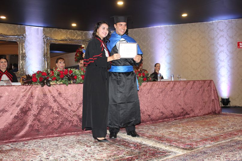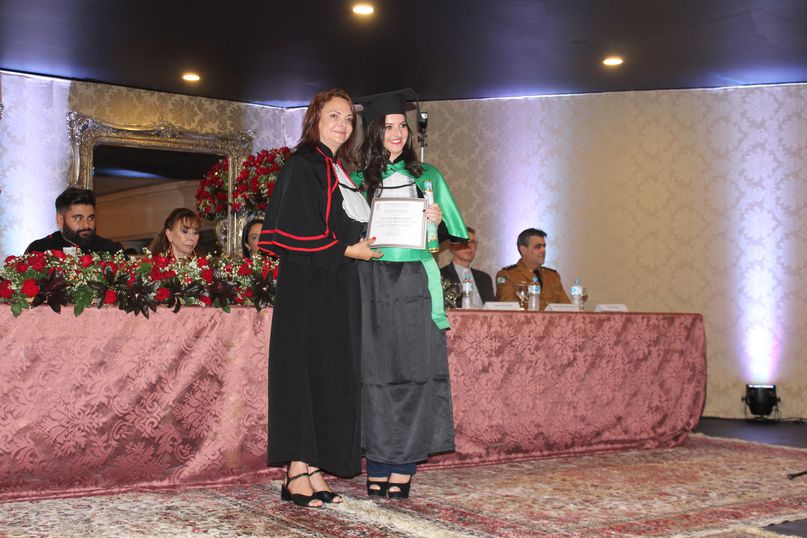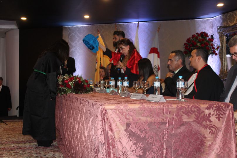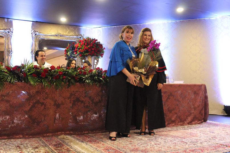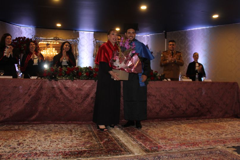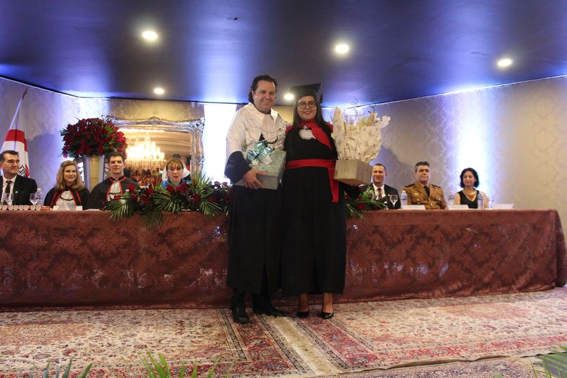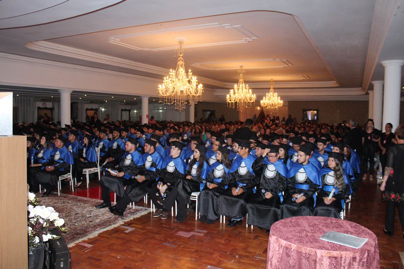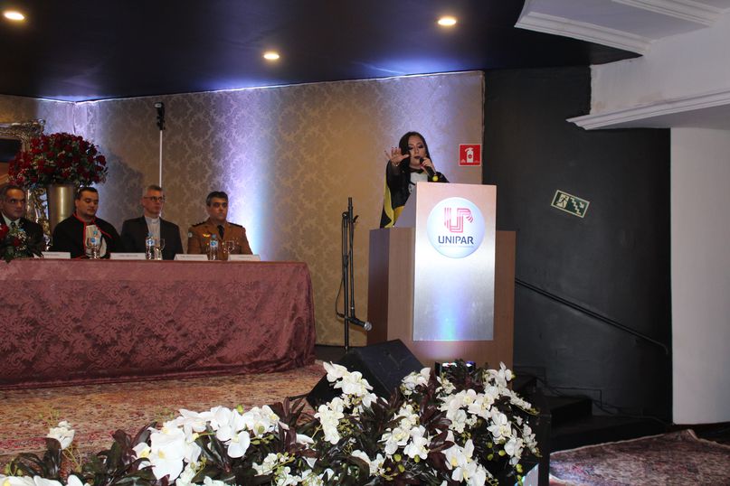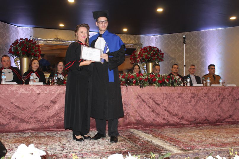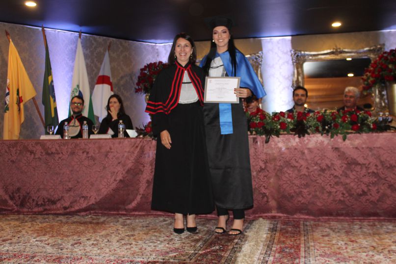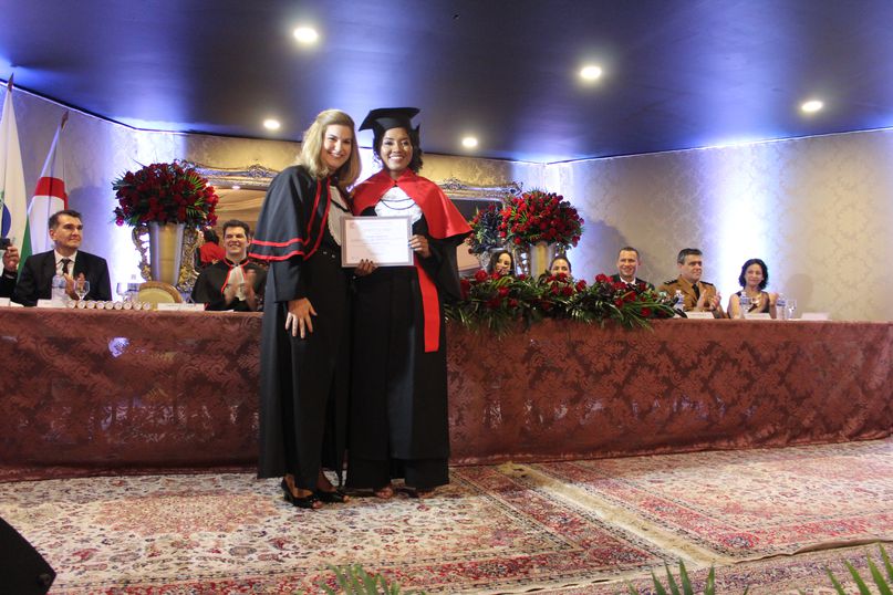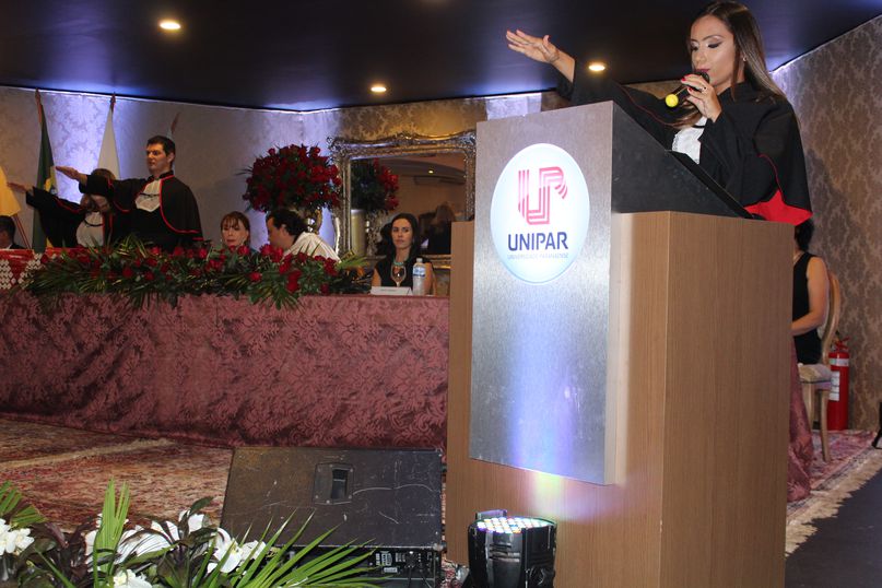 Juramentista - Eleitas pelos colegas, Lívea Maria Antico Ferreira fez o juramento do bacharel em Arquitetura e Urbanismo; Kethilei Rafaela Borsoi do Nascimento, do bacharel em Estética e Cosmética; Bianca Salu, do bacharel em Farmácia; Jéssica Loana Brito Santana, do bacharel em Sistemas de Informação; Letícia Batista Barbim, do bacharel em Administração; Angelica Monteiro Fernandes, do bacharel em Engenharia Civil; e Liziane Araujo, do bacharel em Direito.