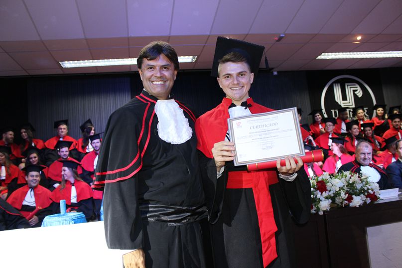 Outra conquista foi a láurea acadêmica. Os alunos destaques nos anos de graduação receberam o certificado de honra ao mérito, entregue pelos coordenadores dos cursos, professores Adriane Uecker e Sérgio Tinoco. Foram laureados Gelson Budtinger, de Administração, e Paulo Nakonesczny, de Direito.