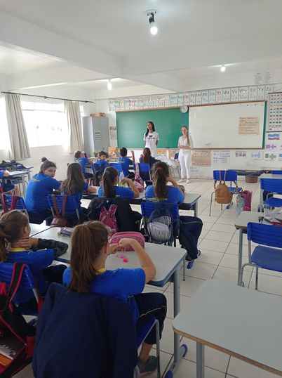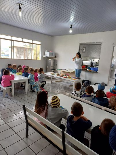 As alunas Emanueli Correa e Gabrielly Natany Bon estiveram no CMEI Zelir Vertorello, falando sobre alimentação saudável voltada aos sentidos do corpo humano, tato, visão, audição, paladar e olfato, abordaram, ainda, a necessidade de higienização de frutas e verduras. As crianças puderam realizar degustação de frutas e ainda desenvolverem atividades com visualização de cores, texturas, aromas, sabores.
