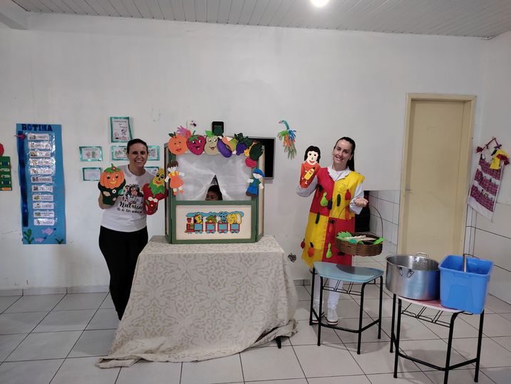 Neste ano, as alunas Eduarda Gabriela Cemin e Vaneza Paula Carneiro fizeram teatros sobre a “História da cesta da dona Maricota” e “A menina que não gostava de frutas” para as crianças no CMEI Nancy Pinto de Moraes; e na Escola Municipal Madre Boa Ventura desenvolveram atividades sobre a “importância da alimentação saudável”.