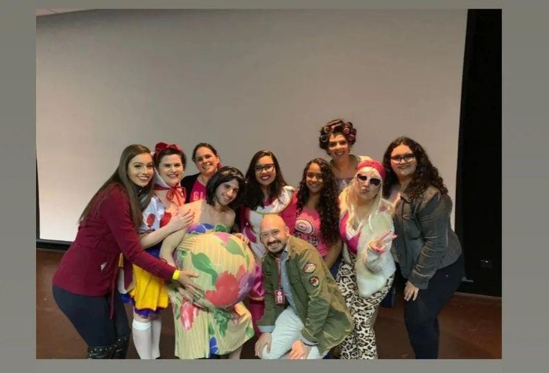 Para descontrair, os professores também se caracterizaram de personalidades do mundo artístico e arrancaram risos. A professora Milena Lorencete conduziu as atividades, com o auxílio dos colegas Everton Padilha, Bárbara Horvath, Anderson Ferreira e Grazielle Mecabô.