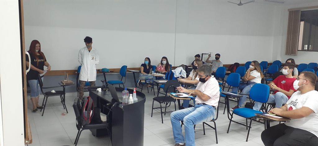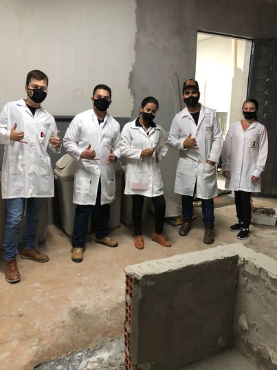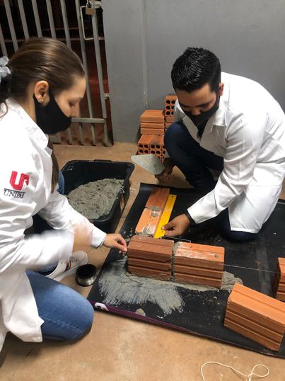 Na disciplina de Construção Civil, o professor Jorgelino instigou os futuros engenheiros a colocarem a mão na massa, literalmente. Eles aprenderam sobre as etapas construtivas da alvenaria e puderam observar os detalhes que determinam boa qualidade de execução desse item construtivo, considerado o mais utilizado no Brasil.