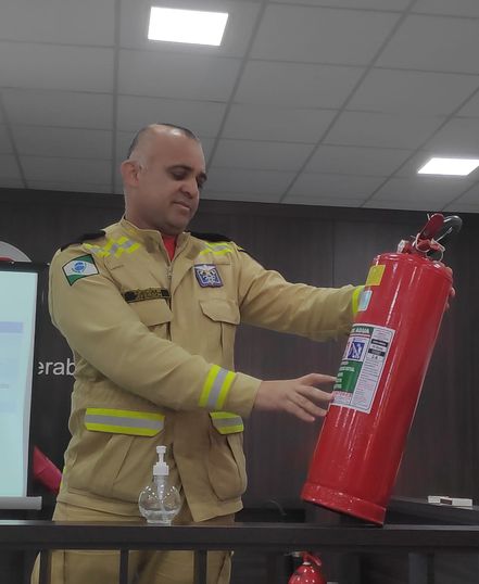 A capacitação foi ministrada pelo bombeiro Jeferson Henrique de Lima (subtenente QPM), que abordou o tema ‘Componentes do Triângulo do Fogo’, bem como os procedimentos de prevenção de incêndio, para ajudar a equipe a se tornar muito mais consciente dos riscos e perigos de um incêndio químico e se sentir mais confiante em lidar com eles.