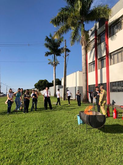 Os colaboradores aprenderam na prática como operar um extintor de incêndio, entendendo os fundamentos, os diferentes tipos deste equipamento, os requisitos de instalação e sinalização, além das responsabilidades legais para prevenir ou minimizar o impacto do incêndio e manter o local de trabalho o mais seguro possível.