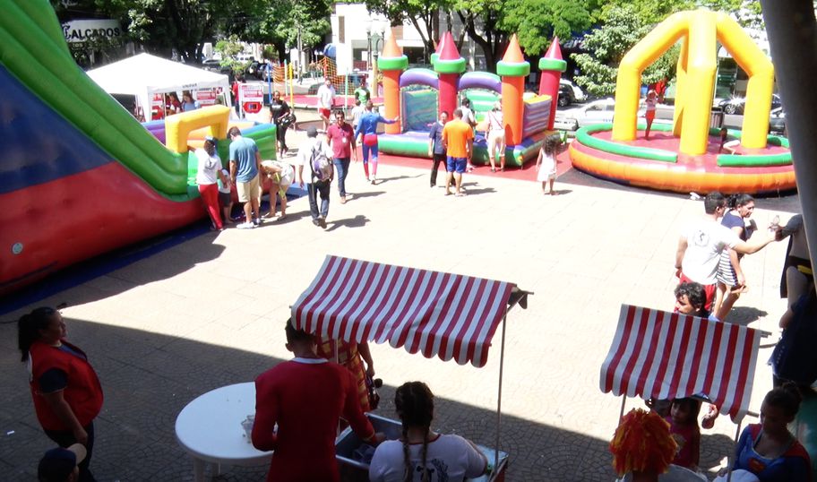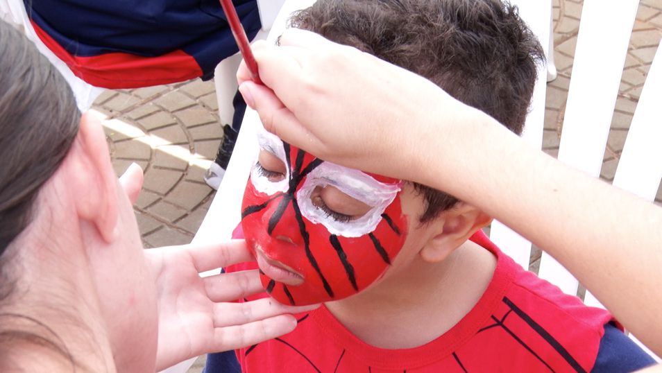 As equipes dos cursos de Educação Física e Pedagogia se encarregaram de receber as crianças, que se divertiram muito nos brinquedos infláveis do projeto Espaço de Lazer e na barraca do projeto Pintura de Rosto.