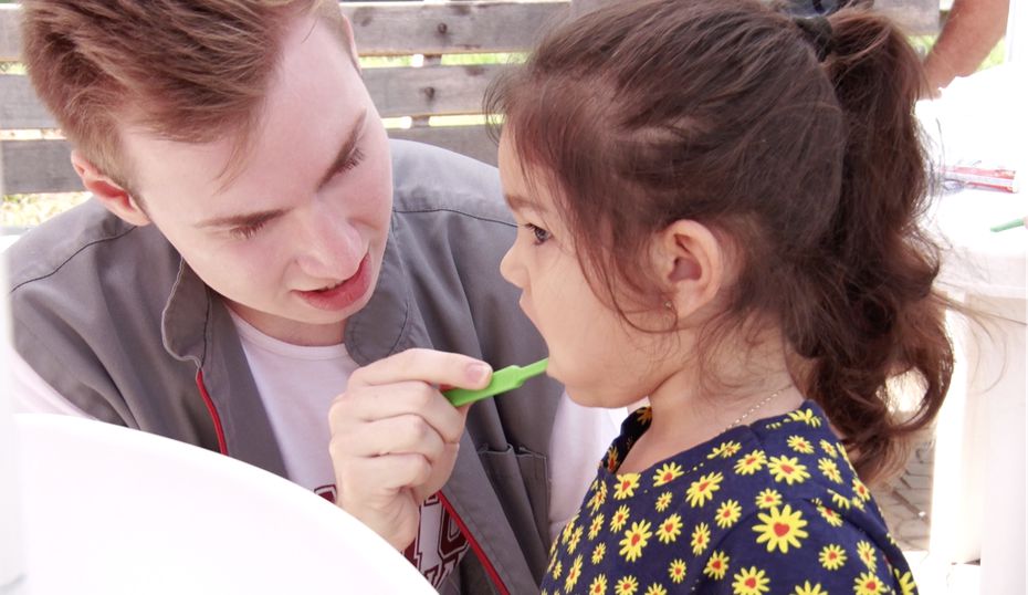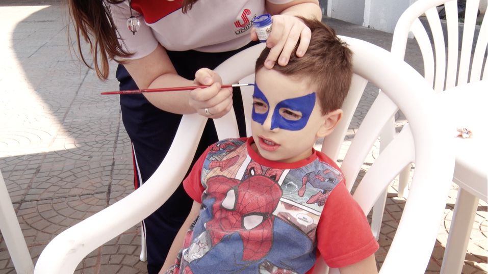 Na barraca de Odontalgia a atração foi a ‘dinossaura Malu’, que fez parte da equipe que ensinou as crianças a maneira correta de escovar os dentes. Na de Pedagogia as crianças se divertiram com jogos interativos e pintura facial feita pelas futuras pedagogas.