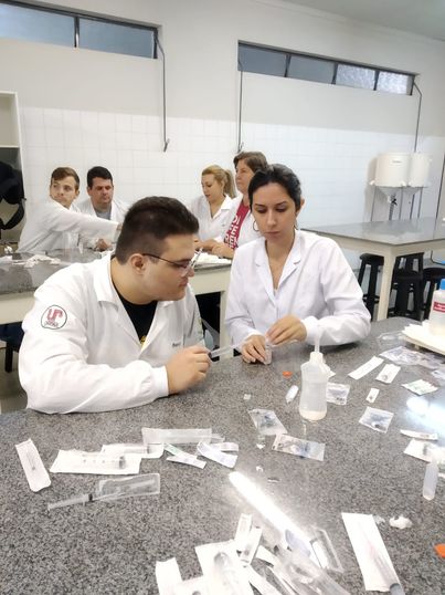A professora Sâmia explicou um pouco sobre o minicurso prático que ministrou. “No curso básico de injetáveis, o estudante tem a oportunidade de aprender uma técnica que envolve treino, pois para cada tipo de substância de principio ativo existe uma forma de aplicação e um veículo para ser diluído o medicamento, o que inclui as diferenças de tempo de absorção das vias”.
