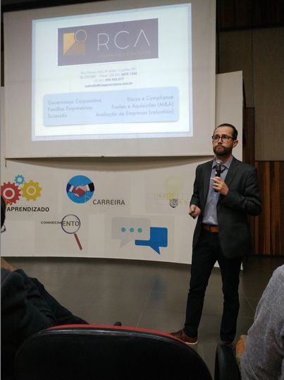 Para falar sobre ‘Ética e compliance nos cenários de crise, disrupção e inteligência artificial’ foi convidado o professor Laudelino Jochen. “Estar em compliance é estar alinhado com as regras e normas dentro de uma empresa”, explicou Jochen, abordando o compliance como um dos pilares da política anticorrupção. “Atualmente as empresas estão precisando cada vez mais criar seus próprios planos para evitar estes problemas, com boas ações e exemplos vindos de todos os funcionários para que o funcionamento seja melhor e harmonioso”.