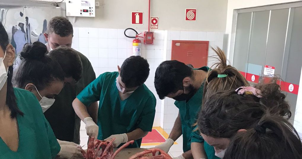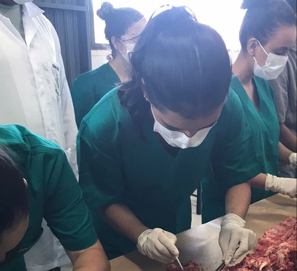 Recentemente, a professora Dra. Rita de Cássia Lima Ribeiro, que ministra a disciplina de Anatomia e Patologia Veterinária, realizou em conjunto com os alunos, a necropsia de um mamífero ruminante da Ordem Artiodactyla, uma lhama fêmea - Lama glama. Antes deste procedimento, os acadêmicos e aprimorandos do curso, coletaram sangue para a realização de exames de hemograma e bioquímicos, urinálise e análise do líquido abdominal, no laboratório de Patologia da Clínica Escola Veterinária. Após a inspeção da necropsia, o material de coração, pulmão, aparelho reprodutor, fígado, baço, trato digestório e urinário foi preparado para estudos anatômicos, assim como o esqueleto completo, que está sendo confeccionado pelos acadêmicos do curso, com o auxílio do colaborador Jhosepher Aguiar.