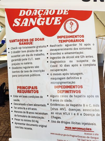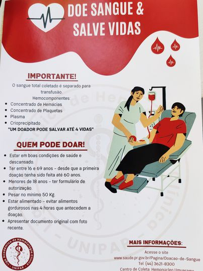 O objetivo foi justamente informar e conscientizar a população sobre a importância deste ato de solidariedade, enfatizando que cada bolsa de sangue doada pode salvar até quatro vidas. Os acadêmicos entregaram material contendo informações e esclarecimentos a respeito do procedimento e das condições necessárias para a doação de sangue, além de oferecerem aferição da pressão arterial.
