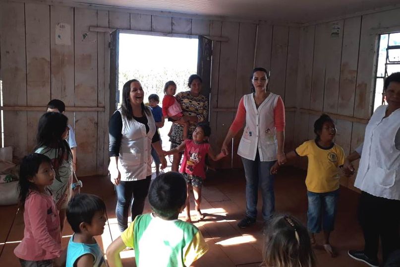 “Realizado em parceria com a Pastoral da Criança, esse projeto tem a finalidade de acompanhar as gestantes e mães indígenas do município, fornecendo subsídios para o desenvolvimento das crianças, desde o ventre da mãe até os seis anos de idade”, explica o coordenador do curso, professor José Ricardo Skolmovski, que supervisiona o trabalho dos futuros pedagogos.