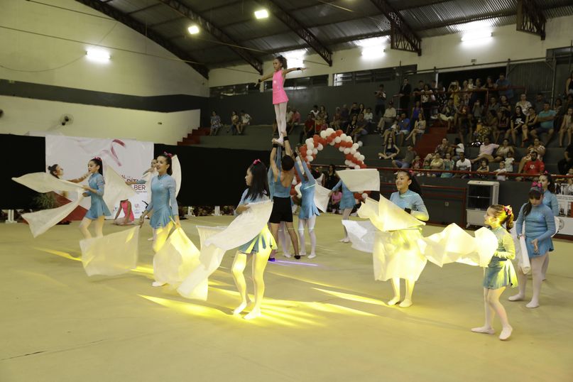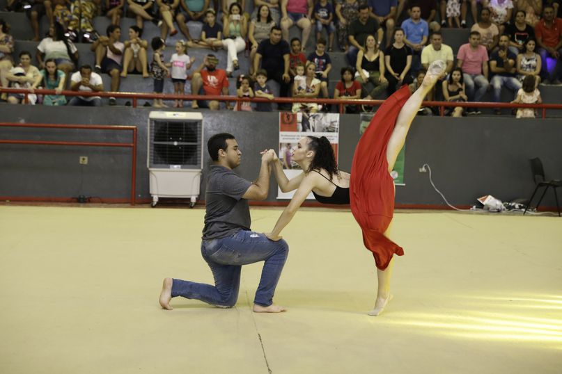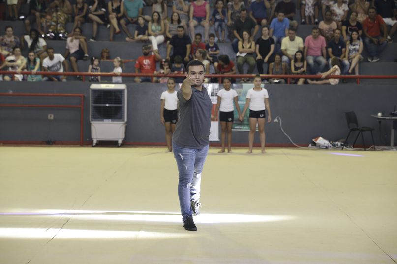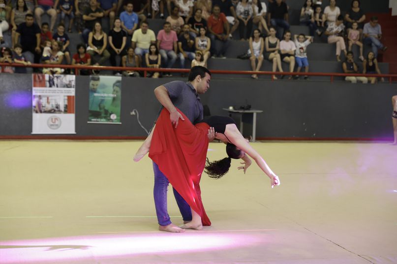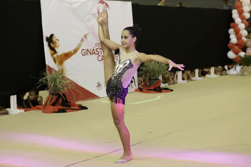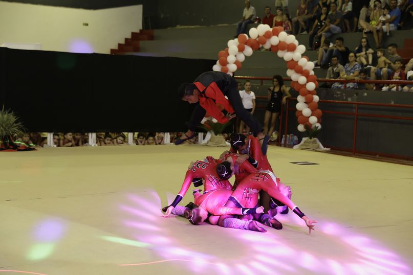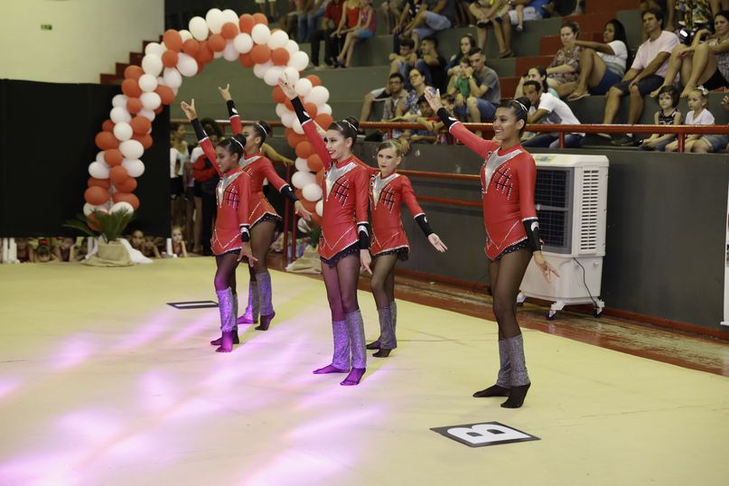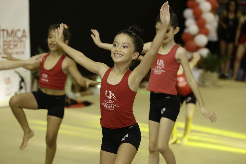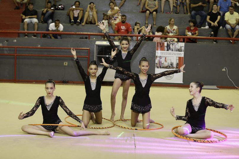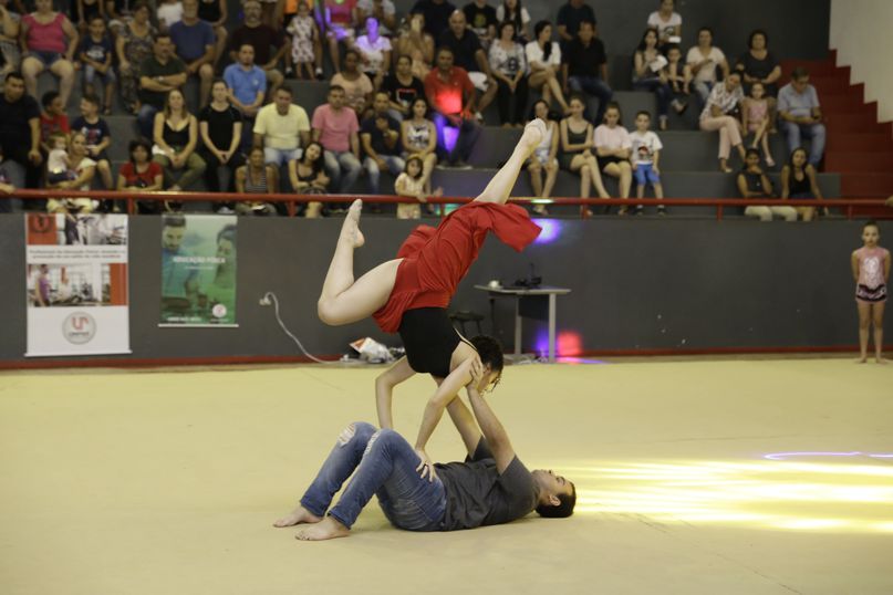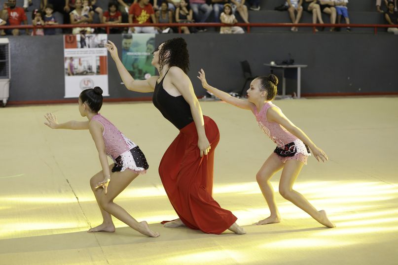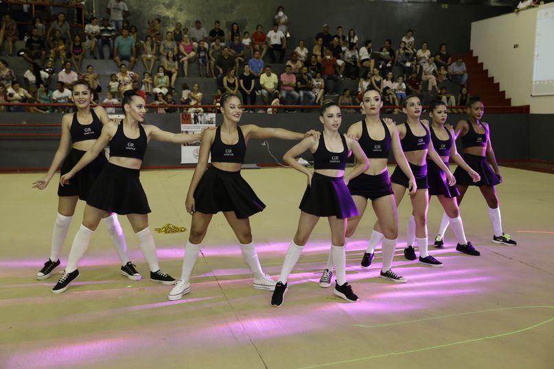 O show de movimentos, ritmo e beleza foi protagonizado pelas meninas do projeto de extensão Oficina da Ginástica, que reúne alunas de escolas municipais e outras na iniciação do esporte, e da Equipe de Rendimento [de competição].