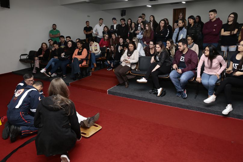 Uma aula/palestra ministrada pelo médico do SAMU, Dr. Ricardo Perci, deu sequência à solenidade. Ele falou e fez demonstrações das técnicas usadas em situações de urgência e emergência, desenvolvidas para salvar e prolongar a vida de pessoas que se encontram em situações de risco.