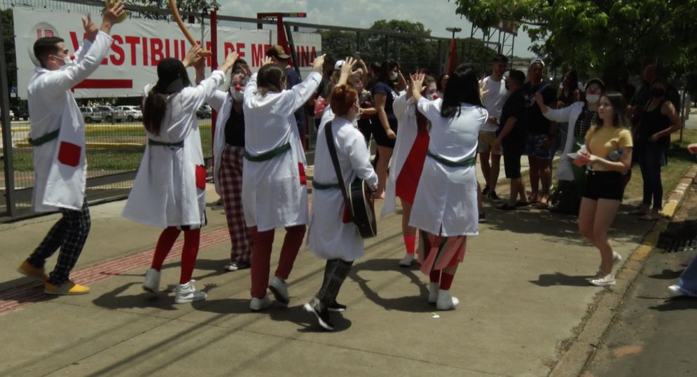 Os veteranos do curso também integraram o Vestibular, promovendo ações de recepção e acolhimento aos candidatos. O Projeto de -Extensão ‘Uniparlhaços’, por exemplo, quebrou o clima de tensão com palavras positivas de motivação e incentivo.